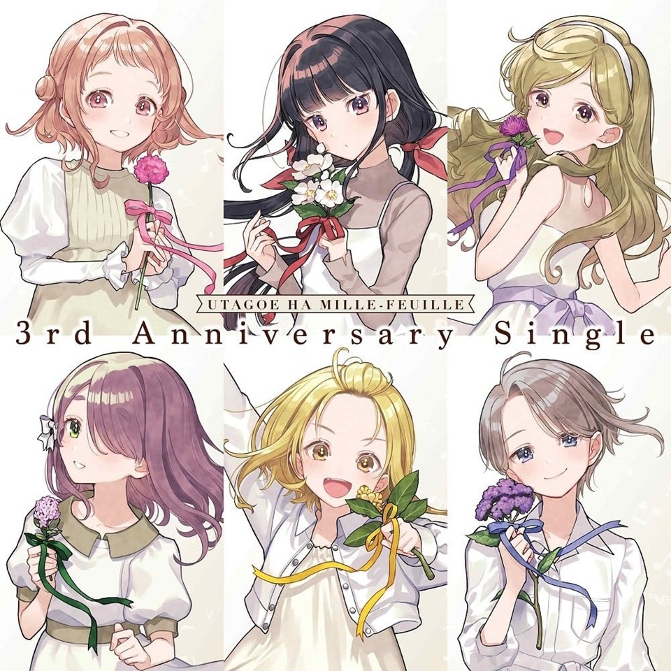 Utagoe ha Mille-Feuille, a music project featuring characters and young female voice actors, released a CD single of their third anniversary songs, “Utagoe High-Six” and “STAY GOLD,” on April 23, posting each song’s music video on their official YouTube channels.